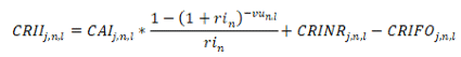 La variable CRII del mercado integrado corresponde al valor implícito de los activos reconocidos en los cargos actuales del mercado integrado, más los activos que no fueron reportados por Electricaribe, variable CRINR, menos los activos que salieron en operación durante el período 2008-2019, variable CRIFO, tal como se observa en la siguiente ecuación: