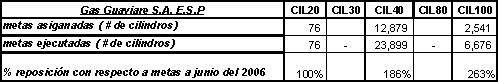 5. El representante legal de la empresa solicita se modifiquen las metas asignadas a Gas Guaviare S.A. E.S.P. para que pueda ejecutar consistentemente el programa de reposición de cilindros de tal manera que estas queden así 132 cilindros de 20 libras; 6.978 cilindros de 40 libras y 450 cilindros de 100 libras para los trimestres de octubre a diciembre de 2006 y de enero a marzo de 2007.