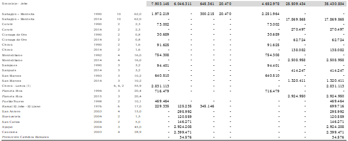 [1] Incluye ramales a Puerto Giraldo, Bohorquez, Campo de la Cruz y Suan