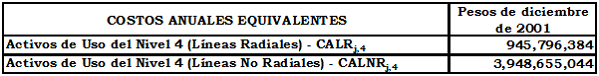 a) Costo anual para remunerar los activos del Nivel de Tensión 4, sin aplicar los criterios de eficiencia de que trata el Anexo No 8 de la Resolución CREG 082 de 2002:
