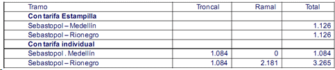 Teniendo en cuenta los datos reportados por TRANSMETANO, en caso de estampillarse el proyecto en cuestión, esto es, al repartirse el costo del proyecto entre los usuarios del Valle de Aburrá y los del Oriente Antioqueño, la tarifa aplicable a los usuarios del Oriente Antioqueño resultaría inferior a la que se obtendría con un cargo independiente; en contraste, para el caso de los usuarios del Valle de Aburrá, la tarifa aplicable sería superior a la vigente. Si esto sobreviene, simplemente significa que se traslada el costo del nuevo ramal a los usuarios del Valle de Aburrá.