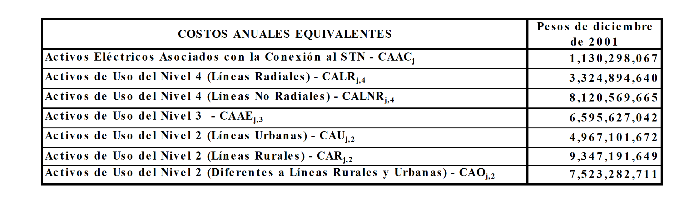 ·Artículo Primero. Costo anual por uso de los activos del nivel de tensión IV. En el cual se debe incluir todo lo concerniente a la subestación Junín y la línea Jamondino-Junín.