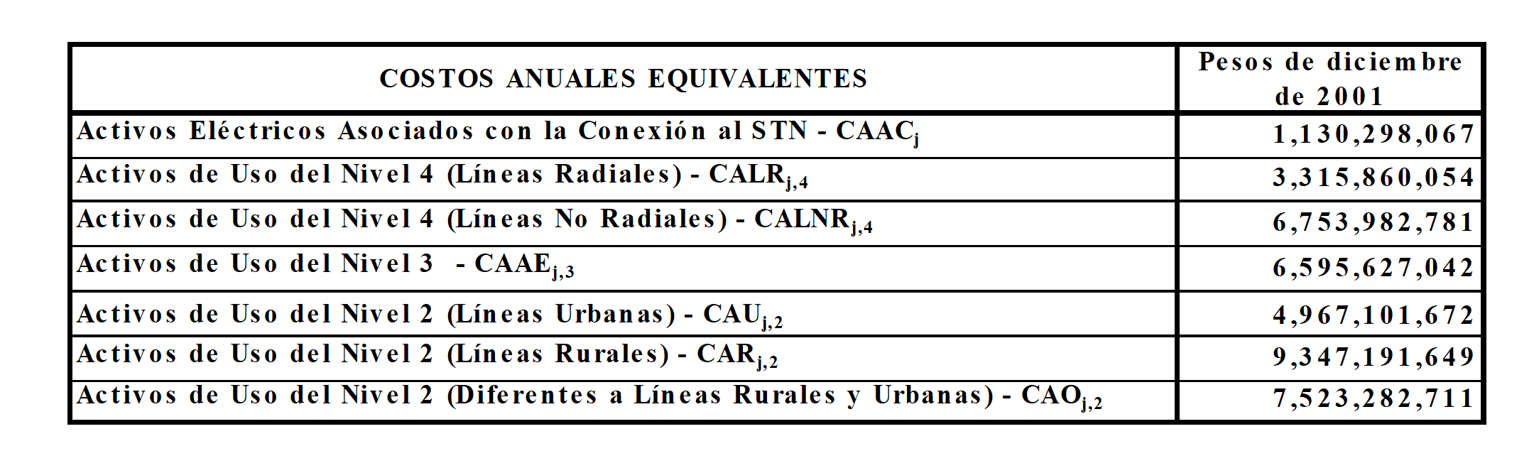 a) Costo anual para remunerar los activos de conexión al STN y de los Niveles de Tensión 4, 3 y 2, sin aplicar los criterios de eficiencia de que trata el Anexo No 8 de la Resolución CREG 082 de 2002:
