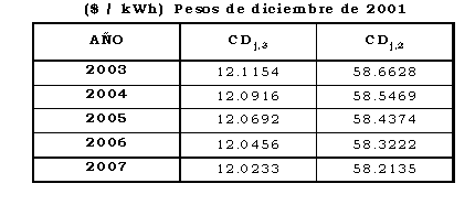 - Cargo de transición para el primer mes de aplicación del Cargo Máximo de Nivel de Tensión 2 aprobado en esta Resolución: 45.2000 $/kWh (pesos de diciembre de 2001).