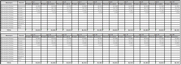 | Cargo de distribución Total | $/m3 | 2.730,88 | 2.756,04 | 2.806,41 | 2.834,90 | 2.642,43 |