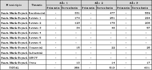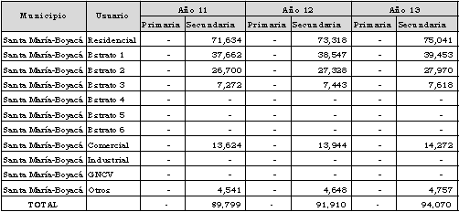 Mediante oficio con radicado CREG E-2017-003080 de marzo 30 de 2017, la empresa envía copia de la solicitud enviada a la UPME para la evaluación metodológica de las proyecciones de demanda para el municipio de Santa María, departamento de Boyacá.