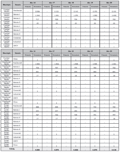 | Cargo de distribución Total | $/m3 | 2.090,21 | 2.077,00 | 2.063,81 |