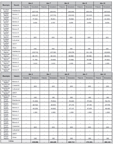 Aplicando la Metodología se calcularon las siguientes variables principales para la componente que remunera los gastos de AOM, aplicable a usuarios de uso residencial y a usuarios diferentes a los de uso residencial:
