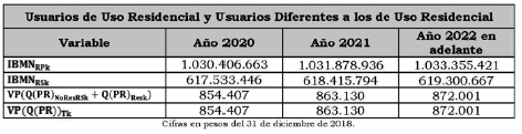 Aplicando la Metodología, se calcularon las siguientes variables principales para la componente que remunera la inversión base aplicable a usuarios de uso residencial y a u suarios diferentes a los de uso residencial: