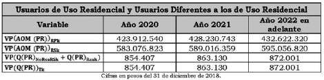 Aplicando la Metodología, se calcularon las siguientes variables principales para la componente que remunera los gastos de AOM, aplicable a usuarios de uso residencial y a usuarios diferentes a los de uso residencial: