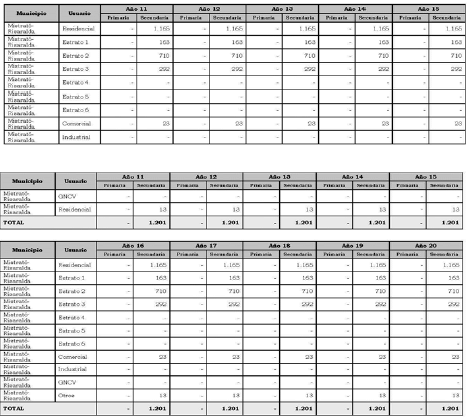 | Componente de Recursos Públicos - Aportes provenientes del convenio de Cofinanciación 806 de 2019 suscrito entre PROVISERVICIOS S. A. ESP y el Ministerio de Minas y Energía | $/m3 | 1.148,07 | 1.138,09 | 1.128,12 |