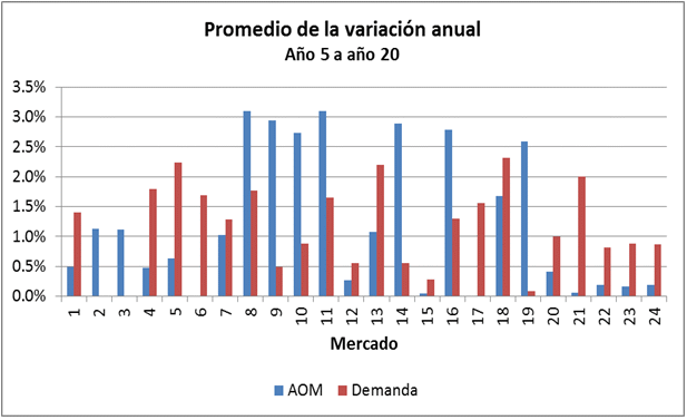 En algunos mercados también se presenta un problema en el grado o nivel de utilización de las infraestructuras construidas, que no es acorde con el criterio de madurez de los mercados que sirvió de base para migrar a una metodología de corte transversal.
