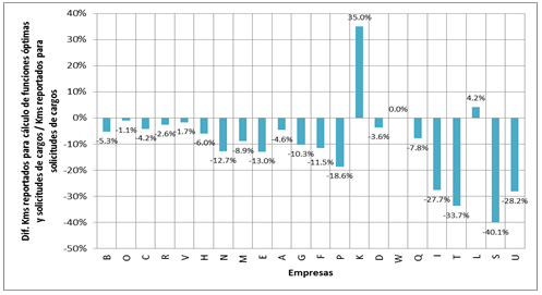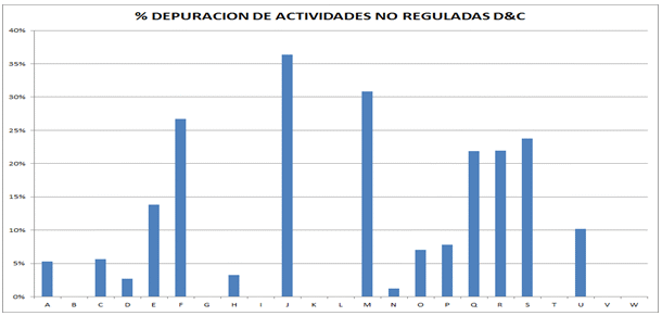 Solo quince (15) de las veintitrés (23) empresas depuraron gastos por estas actividades no reguladas, siendo la de mayor depuración la empresa J con un 36%, y la de menor depuración la empresa N con un 1% (ver Gráfico 2).