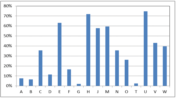 1. De las veintitrés (23) empresas cuya información se utilizó para la estimación de las funciones óptimas que determinan los niveles eficientes de gastos de AOM, solo doce (12) realizaron depuración de las cuentas de costos y gastos AOM totales reportados al SUI por conceptos diferentes a los relacionados cuadro 2 del anexo 10 de la Resolución CREG número 202 de 2013 (ver Gráfico 1).
