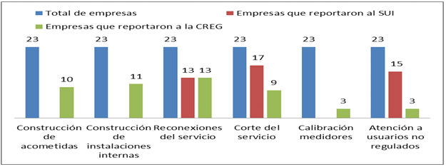 2. De forma similar, los reportes a la SSPD y hechos a la CREG para los análisis mencionados difieren en los servicios de reconexiones y cortes del servicio.
