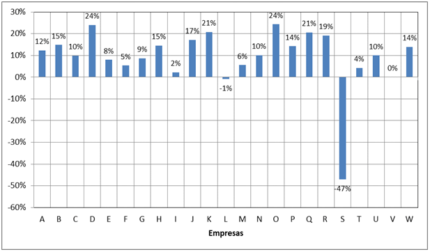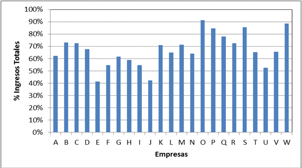 El Gráfico 1 exhibe la depuración realizada por las empresas.