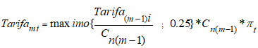 : Es el Costos de prestación del servicio en el nivel de tensión n, para el mes m-1, como se define en la resolución CREG-079/97