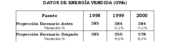Con la demanda proyectada por EDEQ en el escenario Antes se estimaba que el valor de ésta en el año 2000 iba a ser un poco menor que el de 1998 (disminuía en un –0,1%). En el escenario Después (que contiene cifras reales hasta el año 2000) se observa que aunque en 1999 la demanda disminuyó un 9%, durante el año 2000 se incrementó en un 8%, es así que la demanda de este último año disminuyó en un 1,7% con respecto a la de 1998.