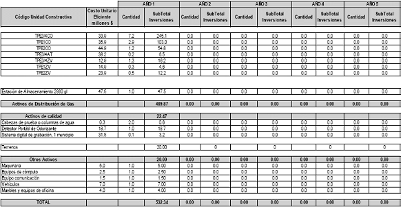 La Empresa, mediante la comunicación en cita reportó a la CREG las proyecciones de demanda, las proyecciones de gastos de AOM de distribución y el programa de nuevas inversiones, clasificadas según el listado de unidades constructivas establecido en el Anexo número. 1 de la Resolución CREG 011 de 2003.