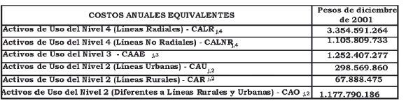 Costo anual para remunerar los activos de los Niveles de Tensión 4, 3 y 2, sin aplicar los criterios de eficiencia de que trata el Anexo número 8 de la Resolución CREG 082 de 2002:
