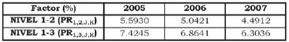 b) Factores para referir las medidas en el Nivel de Tensión 1 a los niveles de tensión 2 y 3: