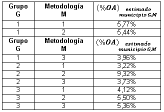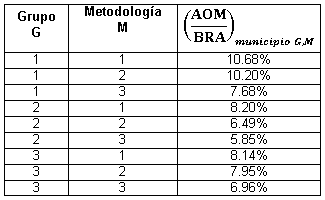 | Código DANE Municipio | Municipio | Departamento | Grupo G | Metodología M |