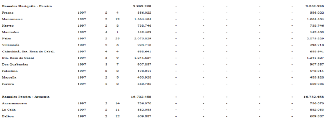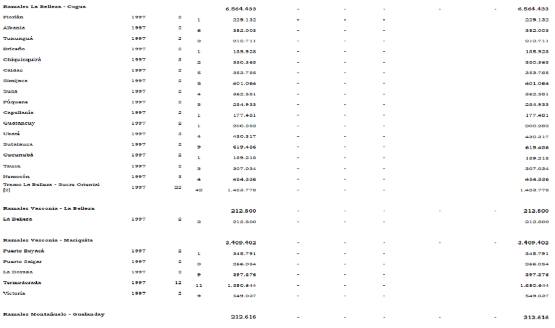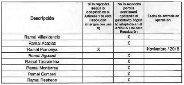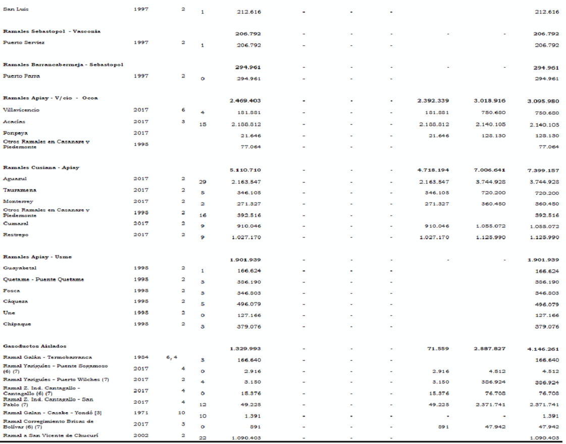 De la información de la anterior tabla, nótese que en el caso de los 8 gasoductos de la presente actuación administrativa solo corresponde el retiro de los valores en la columna con la categoría '