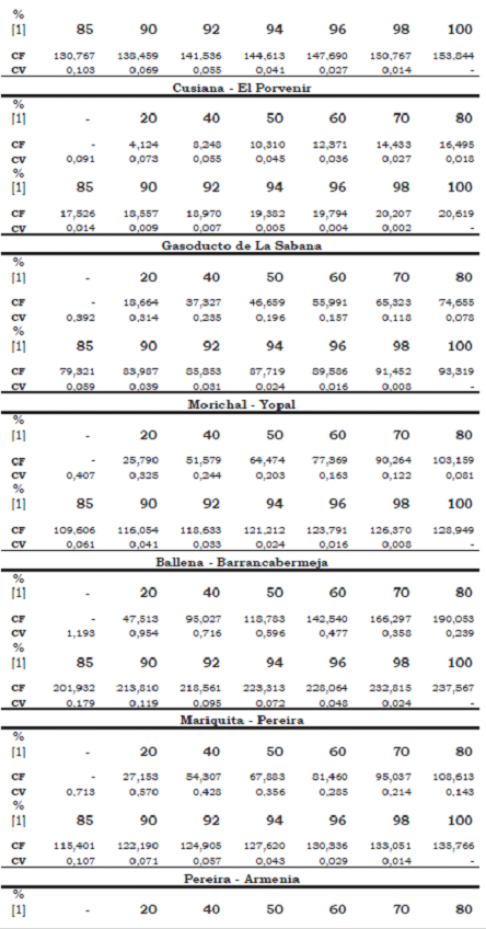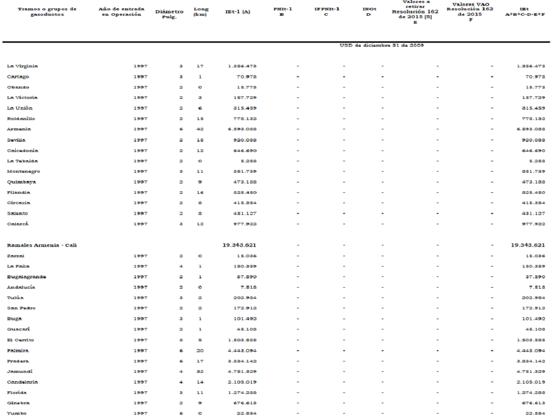 En la Tabla del Anexo 2 de la Resolución CREG 085 de 2016 se aprobaron los siguientes valores para retirar: