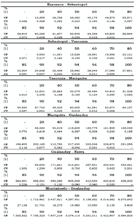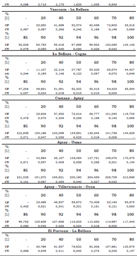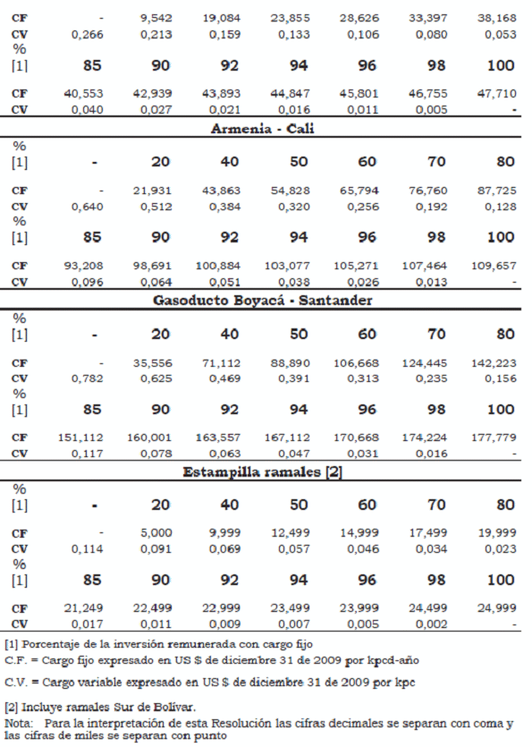 “Artículo 9o. Cargos Regulados de Referencia para la Remuneración de los Costos de Inversión. Para remunerar los costos de inversión para el sistema de transporte definido en el artículo 1o de esta resolución, de conformidad con lo establecido en la Resolución CREG 126 de 2010, se aprueban las siguientes parejas de cargos regulados: