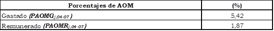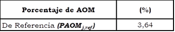 ARTÍCULO 4o. PORCENTAJE DE AOM DE REFERENCIA. <Ver resoluciones que modifican esta resolución en Resumen de Notas de Vigencia> El Porcentaje de AOM de referencia para el OR Distribuidora del Pacífico S. A. E.S.P., calculado en la forma establecida en la Resolución CREG 097 de 2008, es igual a: