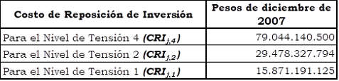 ARTÍCULO 5o. COSTOS DE REPOSICIÓN DE LA INVERSIÓN. <Ver resoluciones que modifican esta resolución en Resumen de Notas de Vigencia> Los costos de reposición de la inversión del OR Distribuidora del Pacífico S. A. E.S.P. para cada nivel de tensión, calculados en la forma establecida en la Resolución CREG 097 de 2008, son los siguientes: