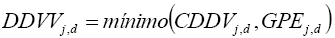 Se considera que hubo DDV cuando el consumo real medido en la frontera comercial cumple la condición de la siguiente ecuación, si no se cumple la condición la DDVVj,d=0: