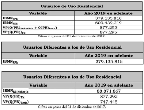 Aplicando la metodología contenida en la Resolución CREG 202 de 2013 y aquellas que la modifiquen, adicionen y/o sustituyan, se calcularon las siguientes variables principales para la componente que remunera la inversión base aplicable a usuarios de uso residencial y a usuarios diferentes a los de uso residencial: