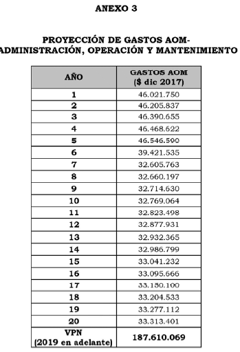| Valor Presente AOM, con nivel de eficiencia | 187.610.069 |