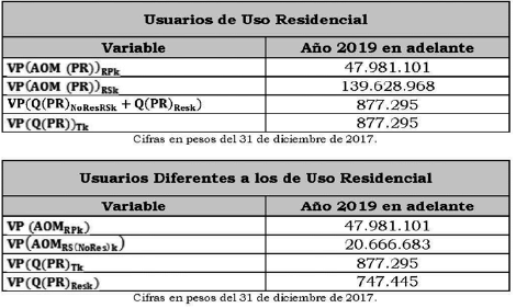 Aplicando la metodología contenida en la Resolución CREG 202 de 2013 y aquellas que la modifiquen, adicionen y/o sustituyan, se calcularon las siguientes variables principales para la componente que remunera los gastos de AOM, aplicable a usuarios de uso residencial y a usuarios diferentes a los de uso residencial: