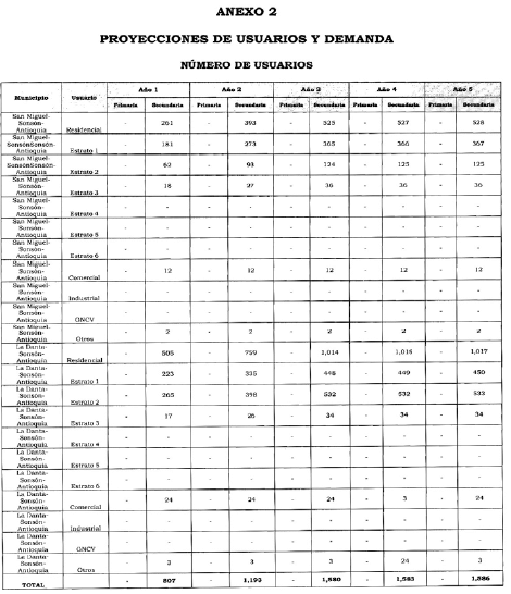 ARTÍCULO 2o. DEMANDAS DE VOLUMEN. Para el cálculo tarifario se utilizó la Demanda de Volumen para el horizonte de proyección presentada en el Anexo 2 de esta Resolución.