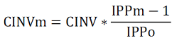 | IPPo: | Índice de Precios al Productor Total Nacional reportado por la autoridad competente correspondiente al mes en el cual se calculó el valor CINV. |