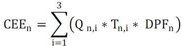 | VCEEIn: | Valor en pesos del consumo de energía eléctrica debido a indisponibilidad de luminarias del Sistema de Alumbrado Público, en el nivel de tensión n. Sólo se consideran aquellas luminarias que están reportadas al SIAP como prendidas cuando deben estar apagadas. |