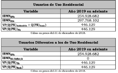 Aplicando la metodología contenida en la Resolución CREG 202 de 2013 y aquellas que la modifiquen, adicionen o sustituyan, se calcularon las siguientes variables principales para la componente que remunera la inversión base aplicable a usuarios de uso residencial y a usuarios diferentes a los de uso residencial: