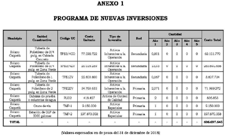 3.1. Programa de Nuevas Inversiones para Municipios Nuevos (INPI). El Programa de Nuevas Inversiones corresponde a un valor de $ 606.697.645 ($ 31 de diciembre de 2018) y su descripción se presenta en el Anexo 1 de la presente resolución.