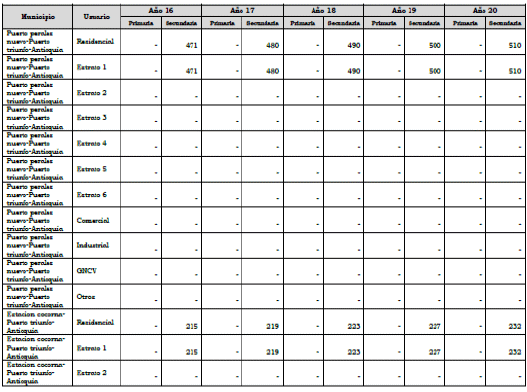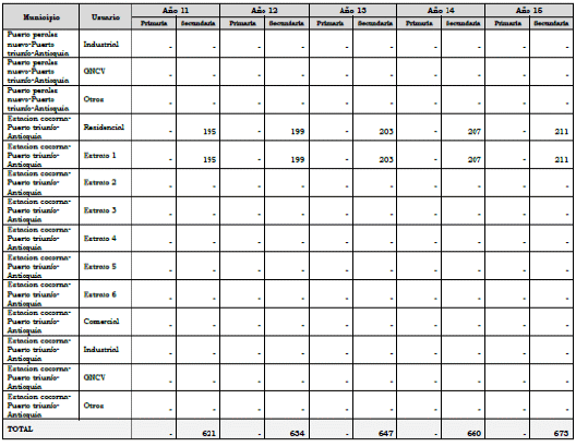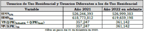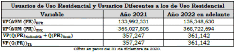 Aplicando la Metodología, se calcularon las siguientes variables principales para la componente que remunera la inversión base aplicable a usuarios de uso residencial y a usuarios diferentes a los de uso residencial: