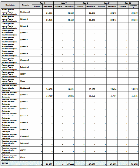 Dado que el sistema de distribución presentado por la empresa ENERGY GAS S.A.S. E.S.P. para el mercado relevante especial solicitado cuenta con red primaria y secundaria, y todos sus usuarios están conectados a la red secundaria, se determinará para este mercado relevante especial un solo cargo de distribución que será aplicable a los usuarios de uso residencial y usuarios diferentes al uso residencial.