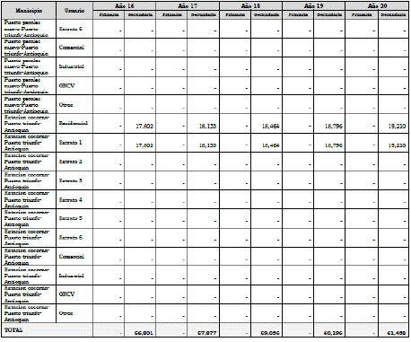 En la solicitud presentada se allegaron las proyecciones de demanda, las proyecciones de gastos de administración operación y mantenimiento, AOM, y el programa de nuevas inversiones, clasificadas según el listado de unidades constructivas establecido en el Anexo número 8 de la metodología.