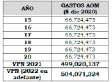 | Valor Presente AOM, con nivel de eficiencia | 499,020,137 | 504,071,324 |