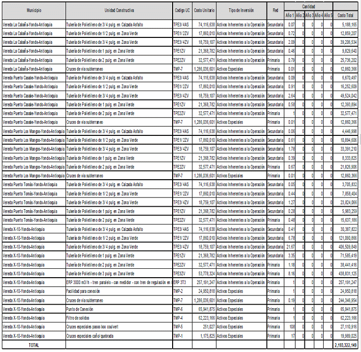 En la mencionada comunicación se allegaron los datos de demanda, gastos de Administración Operación y Mantenimiento (AOM), y las inversiones clasificadas según el listado de unidades constructivas establecido en el Anexo número 8 de la Resolución CREG 202 de 2013.