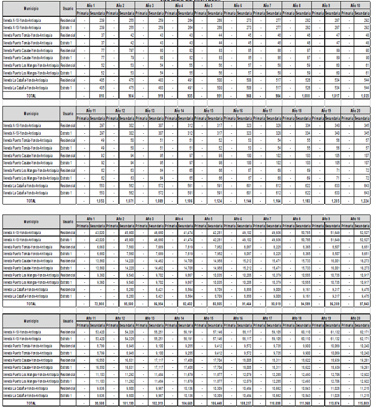 Dado que el sistema de distribución presentado por la empresa HEGA S.A. E.S.P. para el mercado relevante especial conformado por las veredas de X10, Puerto Tomás, Puerto Casabe, Puerto Los Mangos y La Cabaña, perteneciente al municipio de Yondó, departamento de Antioquia, cuenta con red primaria y secundaria y todos sus usuarios están conectados a la red secundaria, se podrá determinar para este mercado relevante un solo cargo de distribución que será aplicable a los usuarios de uso residencial y usuarios diferentes al uso residencial.