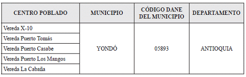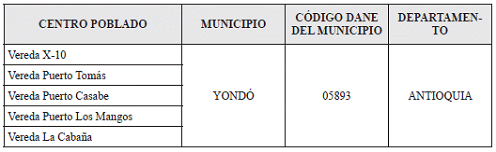 ARTÍCULO 1o. MERCADOS RELEVANTES DE DISTRIBUCIÓN PARA EL SIGUIENTE PERIODO TARIFARIO. <Resolución derogada por el artículo 10 de la Resolución 502-51 de 2023> Conforme a lo definido en el numeral 5.3 de la Resolución CREG 202 de 2013, el Mercado Relevante de Distribución para el Siguiente Periodo Tarifario corresponde a un Mercado Relevante Especial y estará conformado por los siguientes centros poblados: