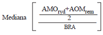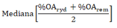 | %OAmaxreconocer | Valor de la posición central del conjunto de datos correspondientes a la semisuma de los porcentajes de los Otros Activos reportados y depurados (%OAryd) y el porcentaje de Otros Activos remunerados actualmente en el cargo promedio de distribución aprobado mediante resolución particular conforme a la Resolución CREG 011 de 2003 (%OArem), ordenados de menor a mayor y de cada una de las empresas consideradas en la Circular CREG 105 de 2015: ![]() |