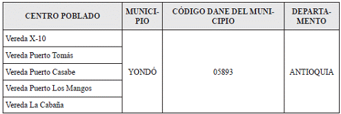 ARTÍCULO 1o. MERCADOS RELEVANTES DE COMERCIALIZACIÓN. Conforme a lo definido en la Resolución número CREG 011 de 2003, se creará un Nuevo Mercado de Comercialización el cual estará conformado por los siguientes centros poblados: