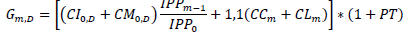 | IPPm-1 | Índice de precios al productor, Oferta Interna, del mes m-1. |
